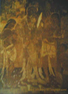 Kamandalu: a water pot (Kamandalu) made from a dry pumpkin contains nectar and is shown on the ground next to Shiva. The process of making Kamandalu has deep spiritual significance. A ripe pumpkin is plucked from a plant, its fruit is removed and the shell is cleaned for containing the nectar. In the same way, an individual must break away from attachment to the physical world and clean his inner self of egoistic desires in order to experience the bliss of the Self, symbolized by the nectar in the Kamandalu.